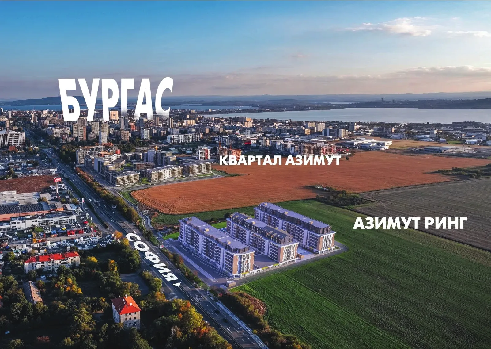 Azimut Ring — концептуальный жилой комплекс «город в городе» в одном из самых перспективных районов Бургаса — кв. Хоризонт (Мадика). Проект объединяет современную архитектуру, продуманную инфраструктуру и комфортный городской образ жизни.