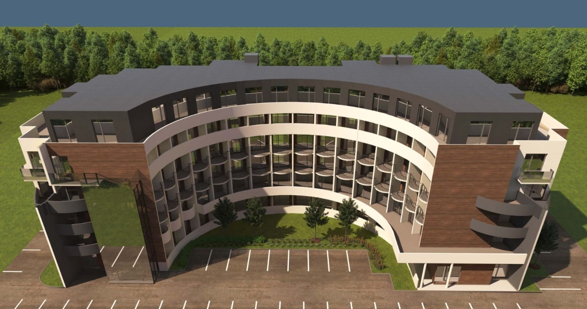 Здание 6-этажное, оборудовано тремя лифтами и включает 100 апартаментов различной планировки: 24 студии, 66 квартир с одной спальней и 10 квартир с двумя спальнями. Все апартаменты предлагаются с отделкой “под ключ”, что позволяет будущим владельцам сразу приступить к обустройству или сдаче в аренду.