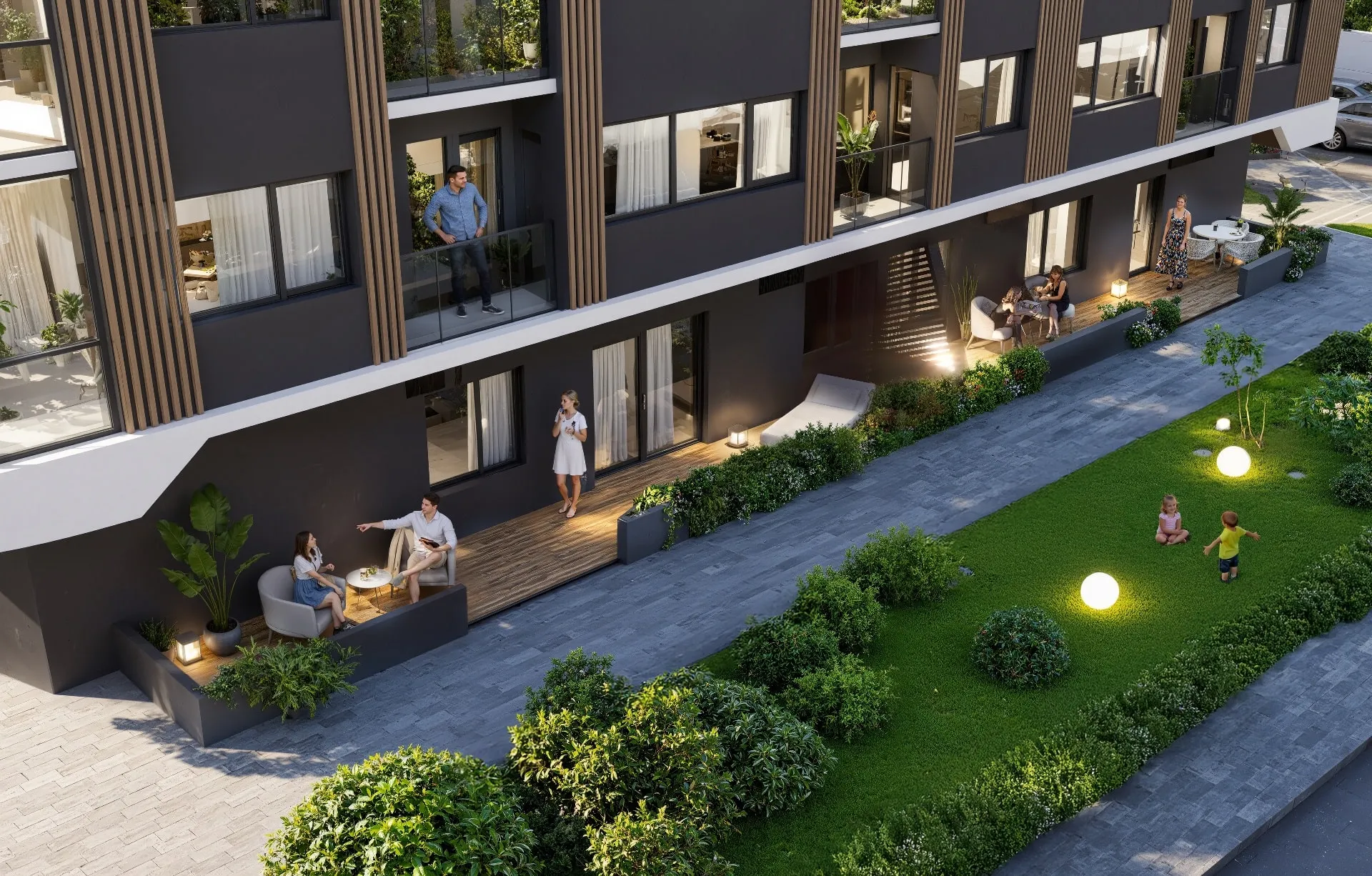 Территория Corners Residential будет благоустроена и озеленена, с обустроенными пешеходными зонами, парковочными местами и зонами отдыха для жителей. Район Акчелар отличается хорошей транспортной доступностью, близостью к магазинам, школам и остановкам общественного транспорта, что делает его удобным для постоянного проживания.