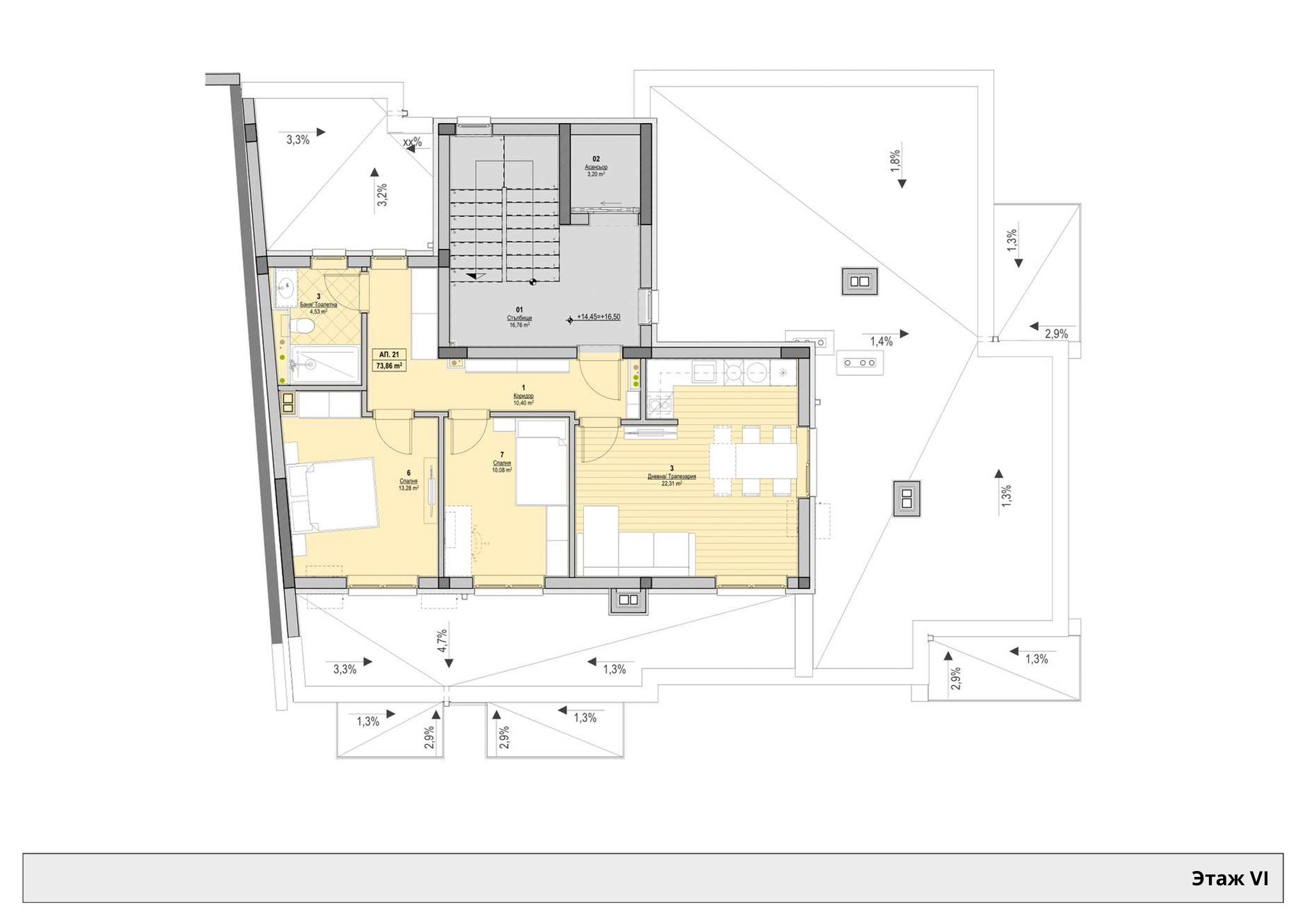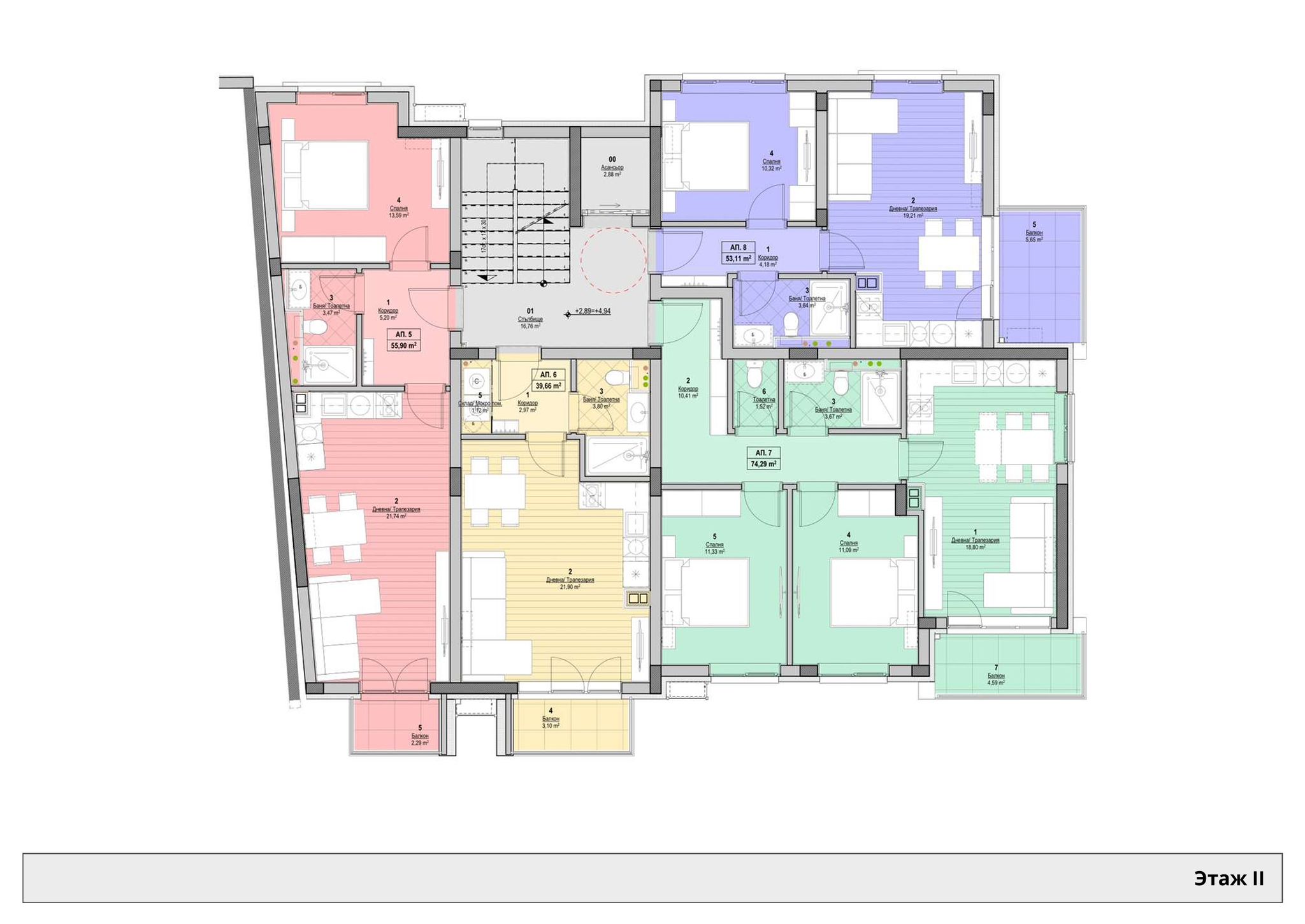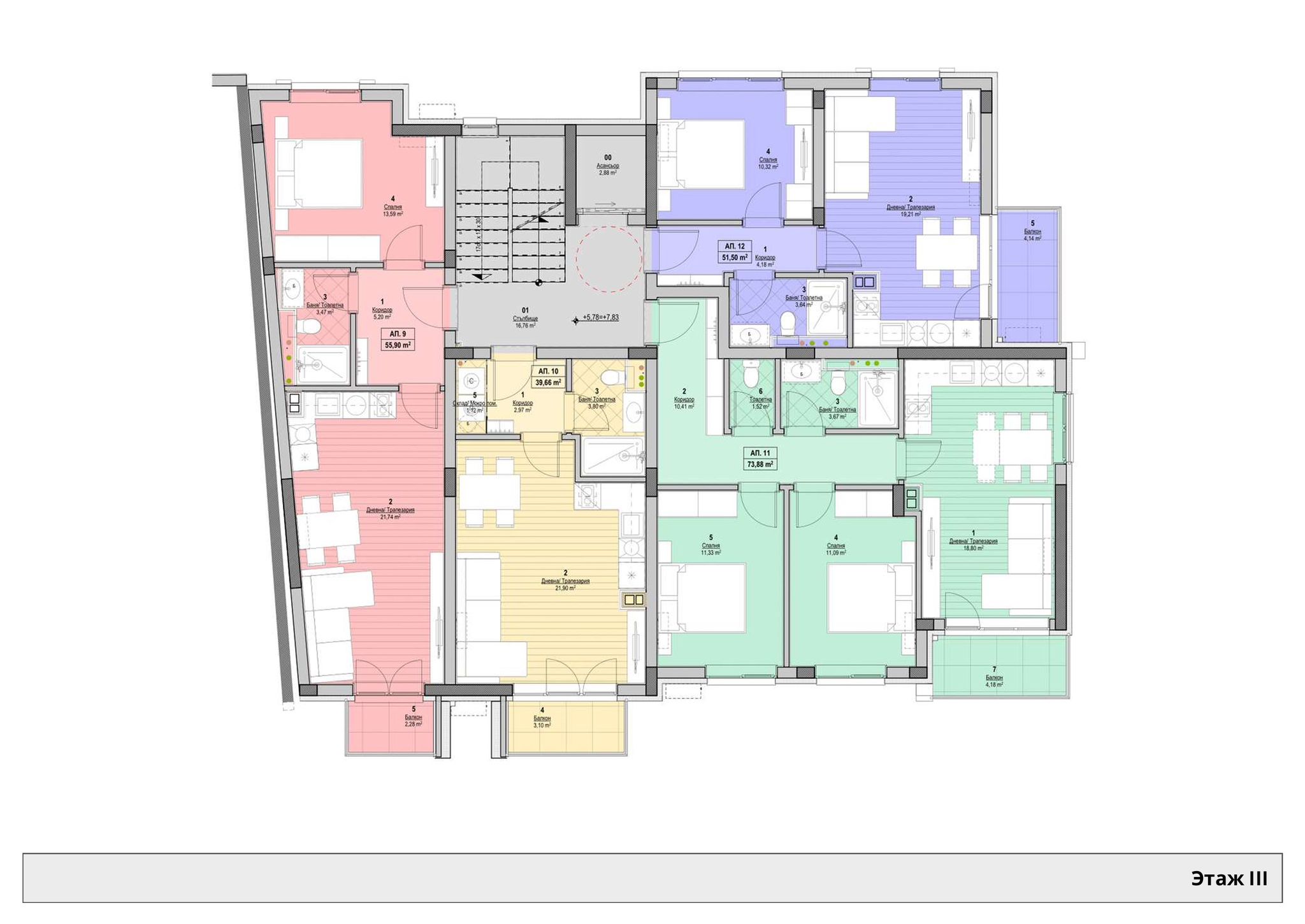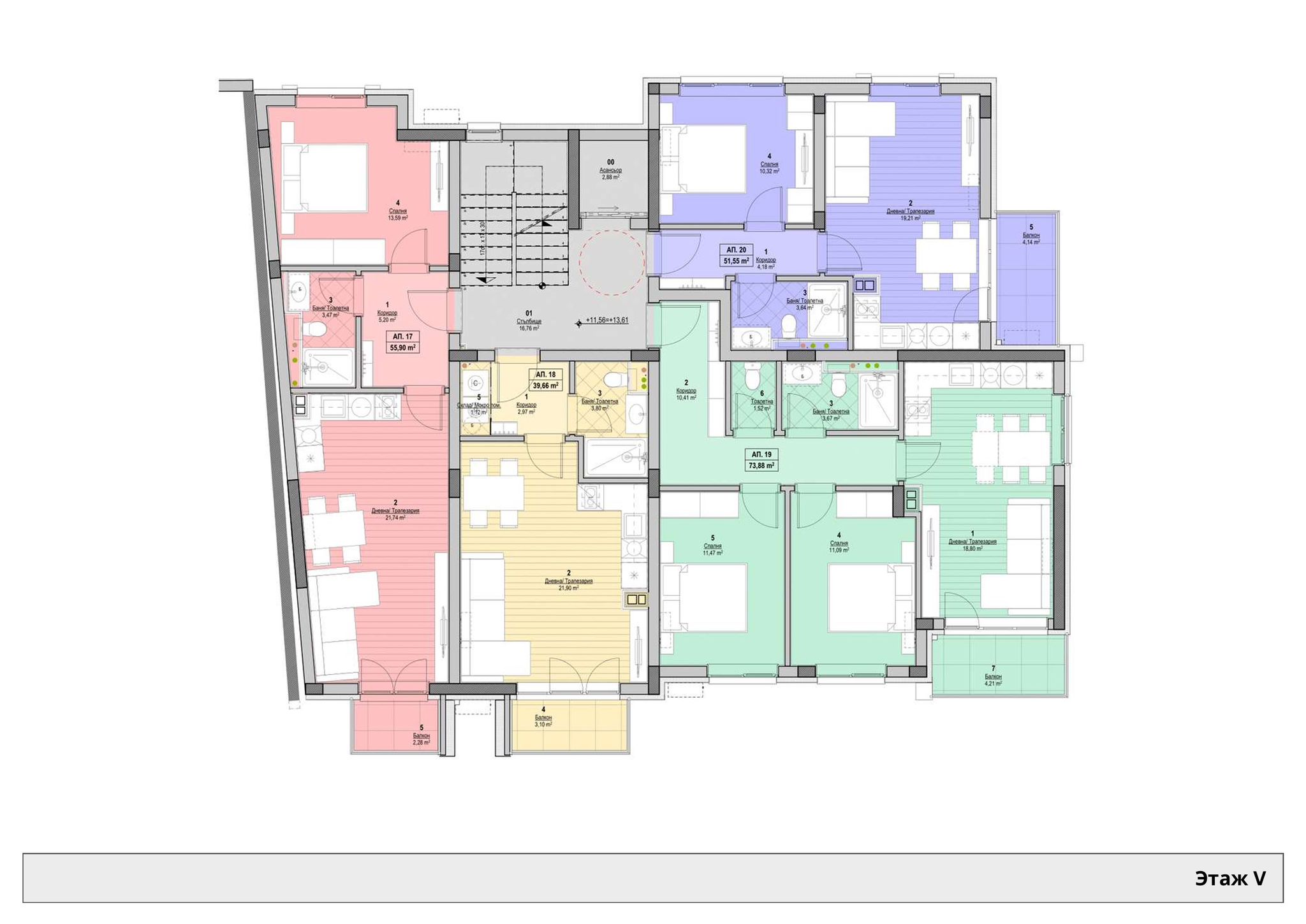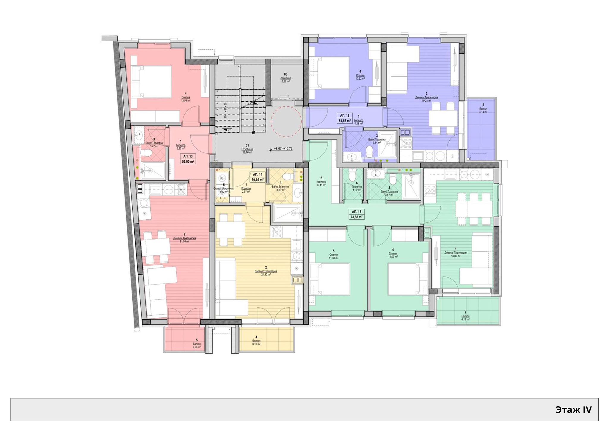 Здание возводится на участке площадью 876 м² и представляет собой фешенебельный дом всего на 21 апартамент. В составе комплекса предусмотрены 6 студий, 9 двухкомнатных и 6 трёхкомнатных квартир. Апартаменты отличаются продуманными планировками, разной площадью и ориентацией по сторонам света. Каждое жильё располагает компактной террасой, где можно наслаждаться мягким климатом болгарского побережья в любое время года.