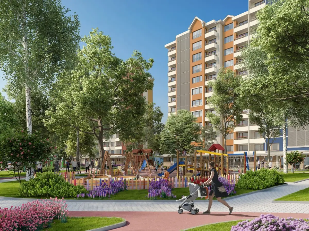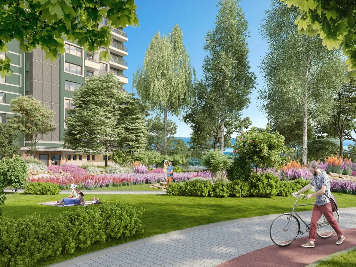 Территория Garden будет благоустроена и озеленена, с пешеходными аллеями, зонами отдыха и парковочными местами для жителей. Район отличается спокойной атмосферой и отличной инфраструктурой — поблизости находятся магазины, кафе, остановки общественного транспорта и все необходимые удобства для повседневной жизни.
