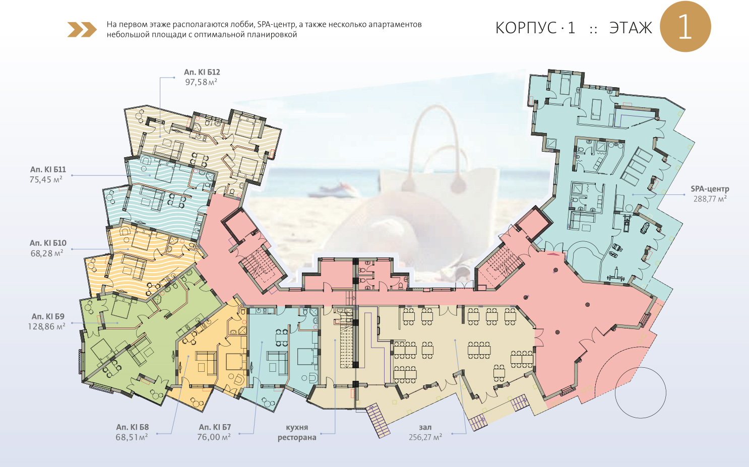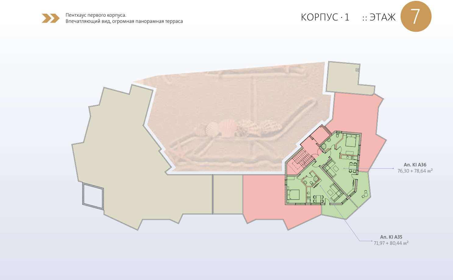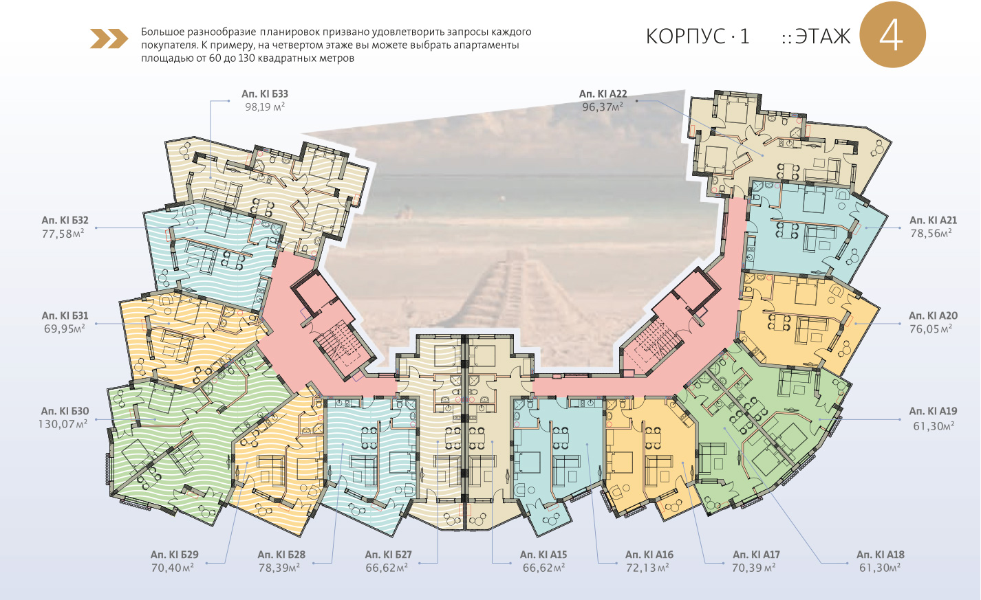 Здание высотой 7 этажей. Диапазон площадей по комплексу: от 68.51 м² до 97.58 м². Предусмотрено отопление типа климатик.