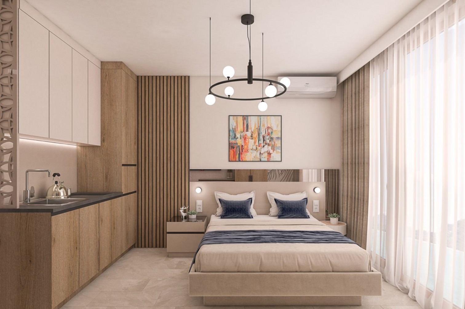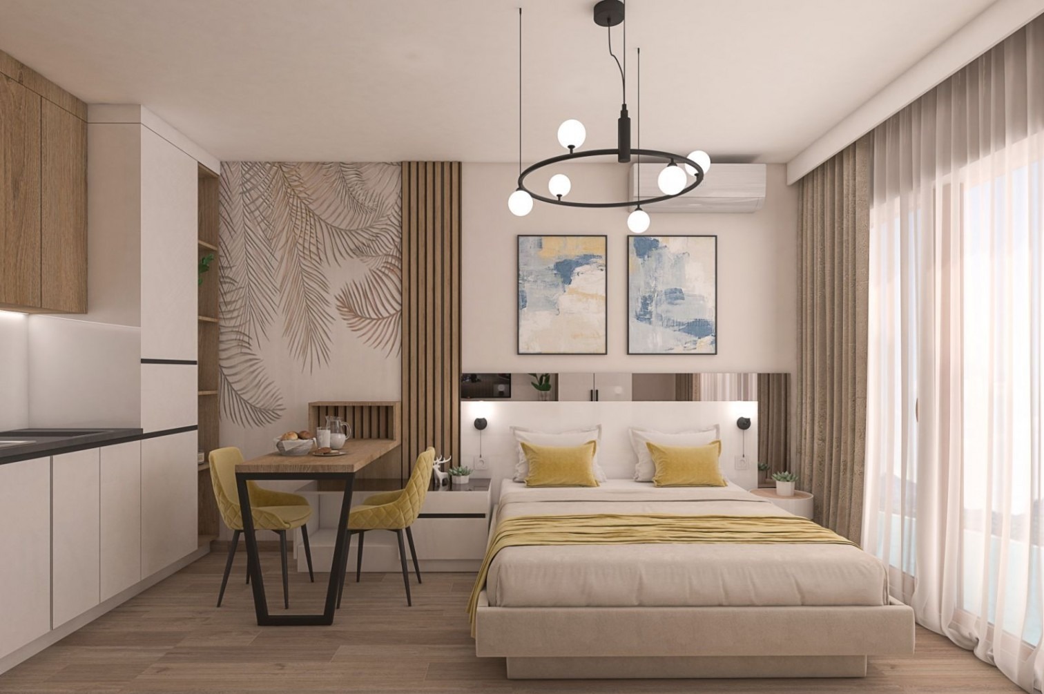 Из окон доступны виды на море, горы и озеленённые зоны (сад). Инфраструктура и удобства комплекса включают бассейн, лифт, наличие мебели и паркинг.