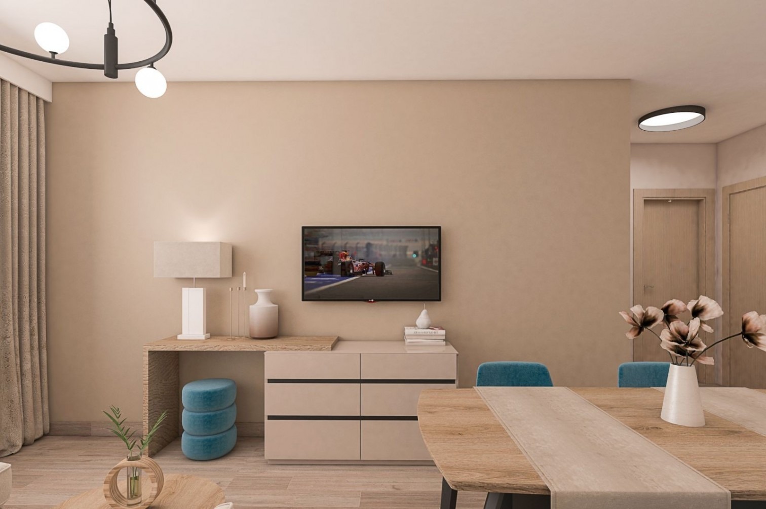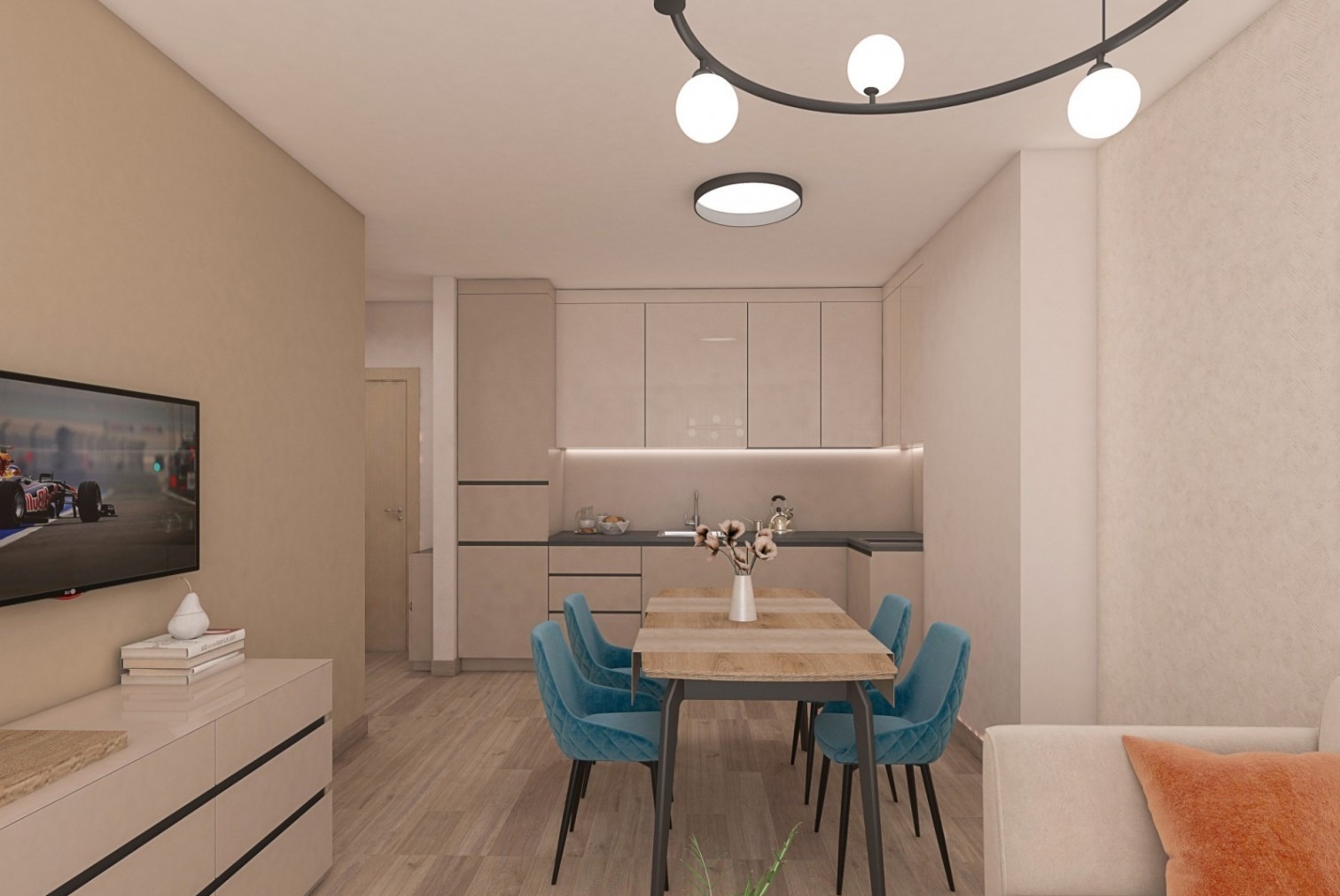 Локация удобна для повседневной жизни: ориентировочно 400 м до моря, около 150 м до магазина и примерно 150 м до остановки общественного транспорта.
