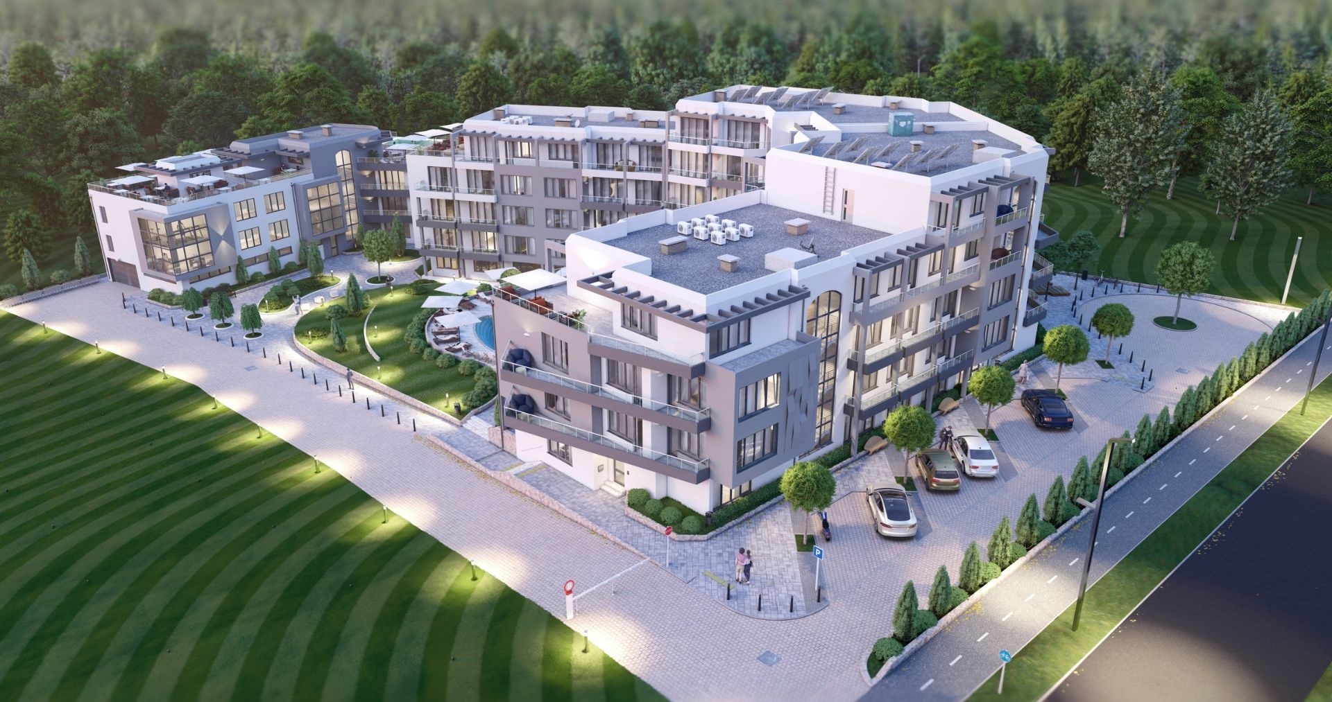 Для удобства и досуга жителей предусмотрен бассейн, фитнес-центр, ресторан, а также благоустроенный сад. На территории — охраняемые подземная и открытая парковки для жильцов. Комплекс находится рядом с тихой дорогой, ведущей к деревням и лесам, что позволяет наслаждаться природой и в то же время оставаться в черте курорта.