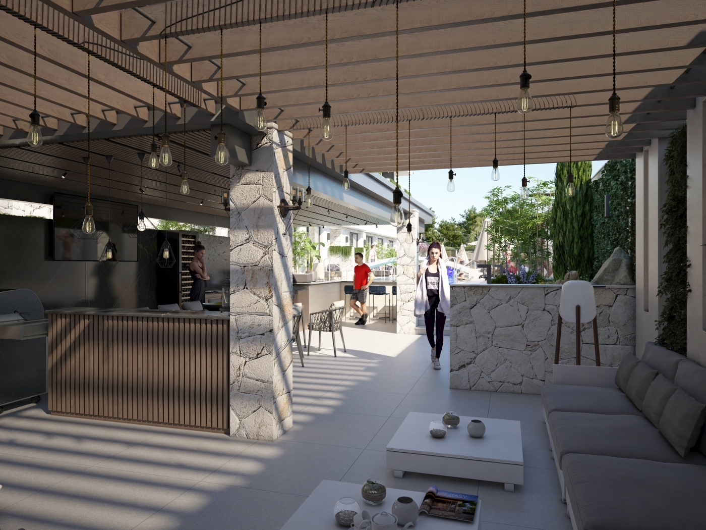Комплекс расположен в центральной и при этом тихой части курорта, в окружении зелени и в пешей доступности от пляжа. Такое расположение позволяет наслаждаться спокойствием и уединением, оставаясь рядом с магазинами, кафе, ресторанами и другой курортной инфраструктурой. Район отличается удобной транспортной доступностью и развитой городской средой.