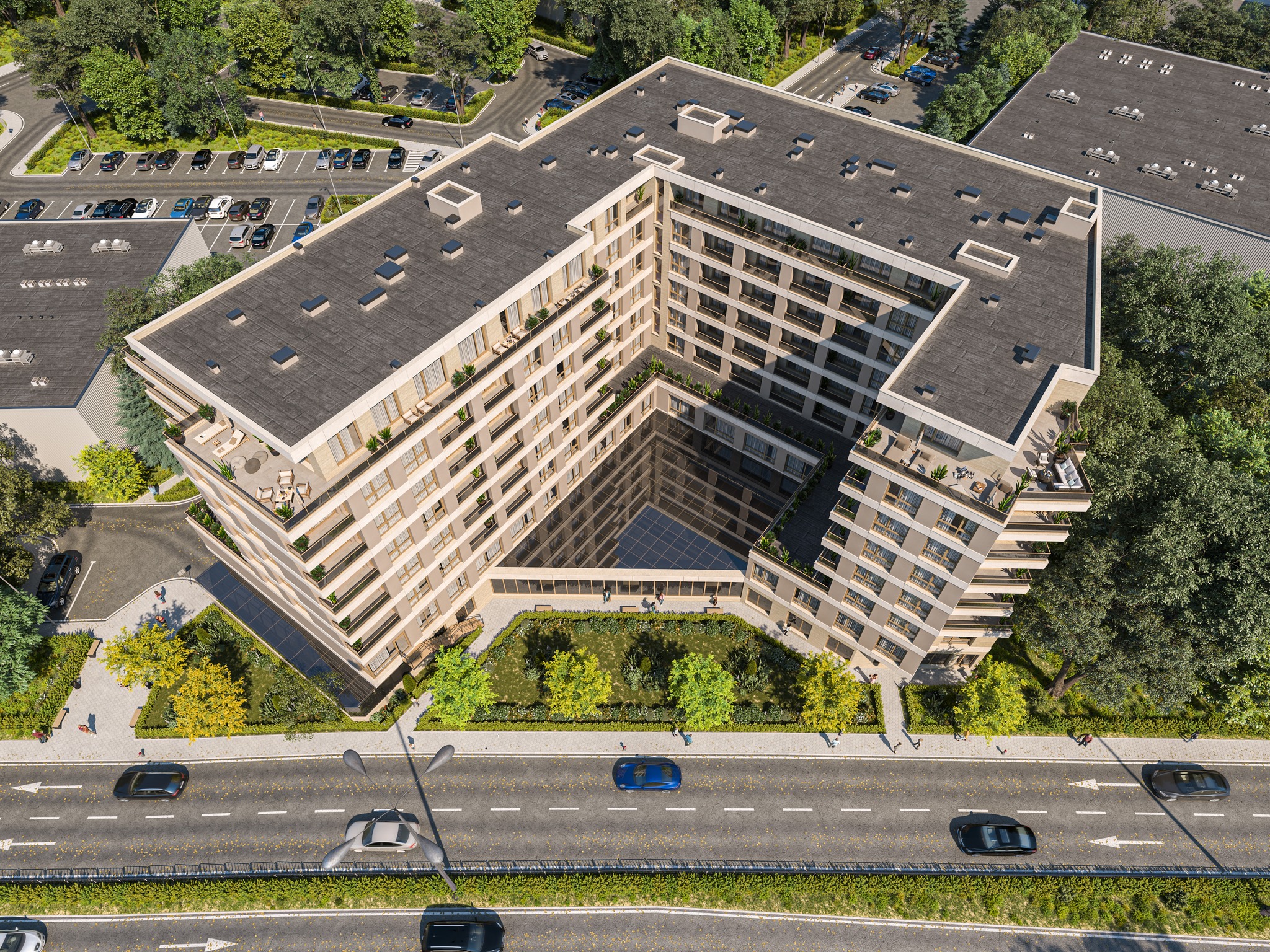 Комплекс находится рядом с западным автовокзалом. В нескольких метрах — Billa, Lidl, JYSK и торговый центр. Отличное транспортное сообщение, поблизости школа и детский сад.