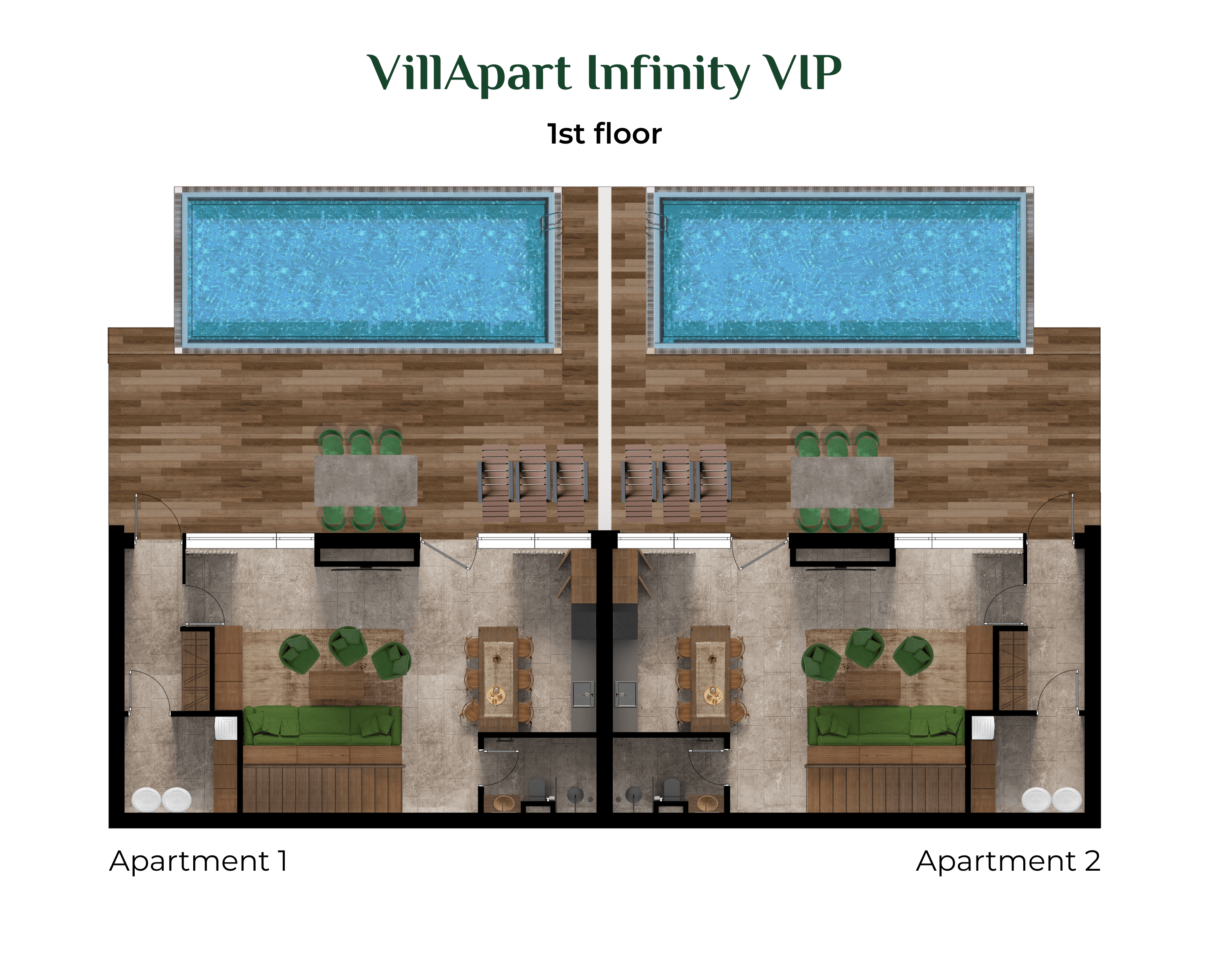 Комплекс VillApart Aura расположен всего в нескольких шагах от большого бассейна, детского клуба и бара, что делает его идеальным выбором для семейного отдыха и постоянного проживания. Территория тщательно благоустроена: предусмотрены пешеходные дорожки, зоны отдыха и парковочные места.