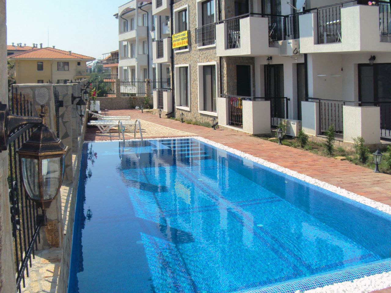 Район комплекса отличается развитой инфраструктурой: поблизости расположены магазины, кафе, рестораны, аптеки и остановки общественного транспорта. До пляжа можно дойти пешком, а рядом находятся природные зоны и прогулочные аллеи. Тихое расположение при этом обеспечивает лёгкий доступ к центру Солнечного берега и всем развлечениям курорта.