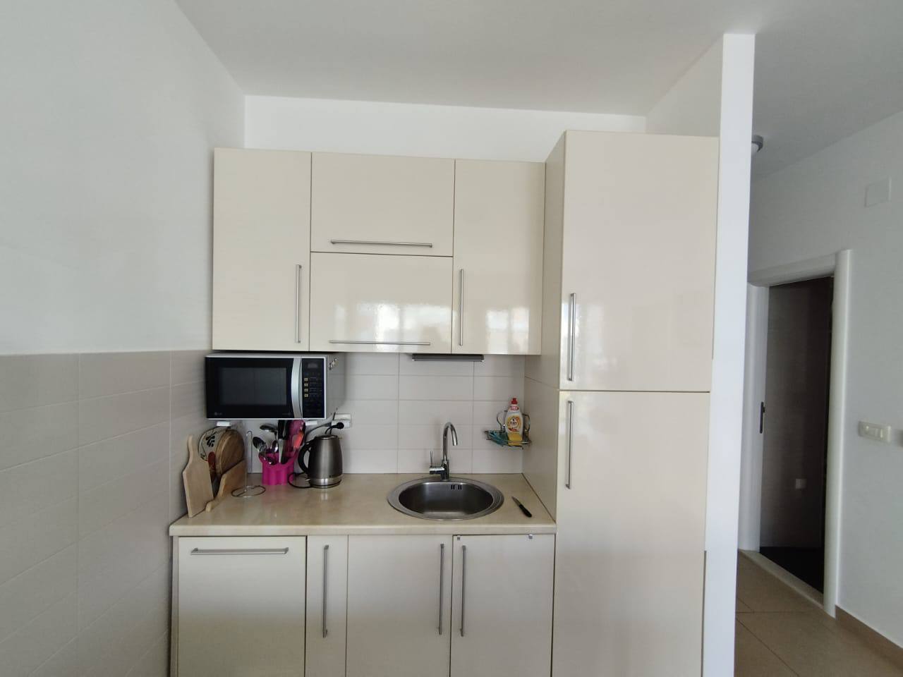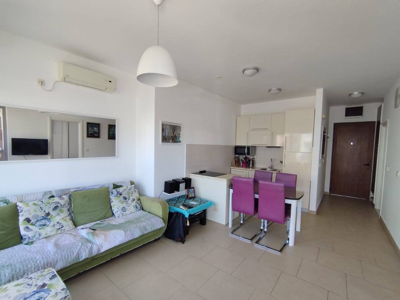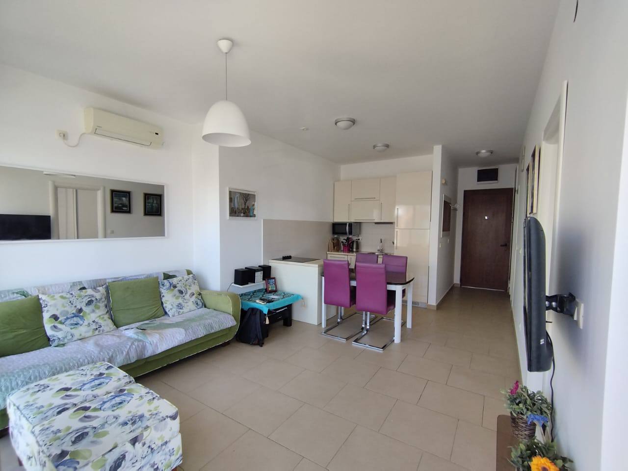 Квартира расположена в трёхэтажном доме, продаётся с мебелью и полностью готова к заселению. Закрытая охраняемая территория комплекса предлагает бассейн, парковку и ухоженные зоны отдыха.