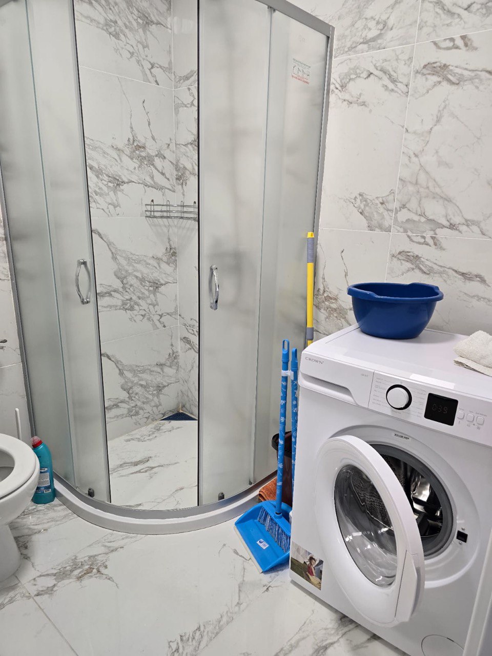 Удобное расположение: рядом супермаркет «Младость», кафе и остановки транспорта. До пляжа — примерно 7–10 минут пешком.